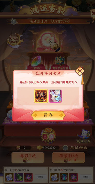l 掷出鸿运骰,根据朝上的颜色可获得对应颜色的随机大奖;