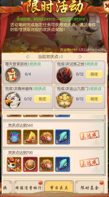 活动期间完成指定任务可获得欢庆点,满足指定条件时即可领取对应的欢庆点奖励!