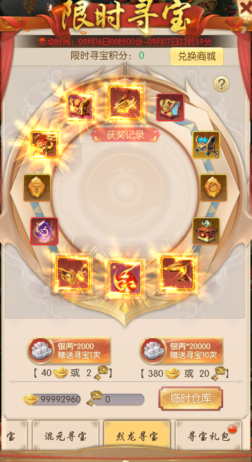 l 寻宝积分还可保留到下一次活动中使用