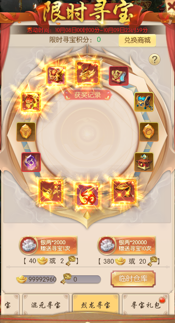 l 寻宝积分还可保留到下一次活动中使用