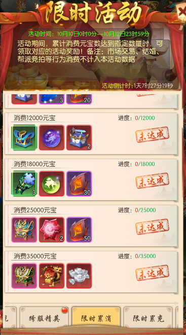 备注:市场交易、结婚、帮派竞拍等行为消费不计入本活动数据。