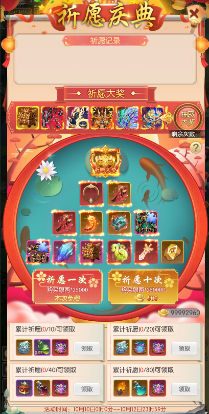 活动期间,累计消费元宝数达到指定数量时,可领取对应的活动奖励!