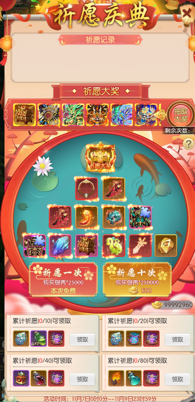 少侠可通过祈愿有机会获得珍品魂灵【瑶风魂灵】,大坐骑【玄灵冰凤】、【白玉金龙】、【雪地精灵】,以及限定翅膀化形【乾坤极羽】!此外,累计奖励奖励多多,少侠切勿错过!