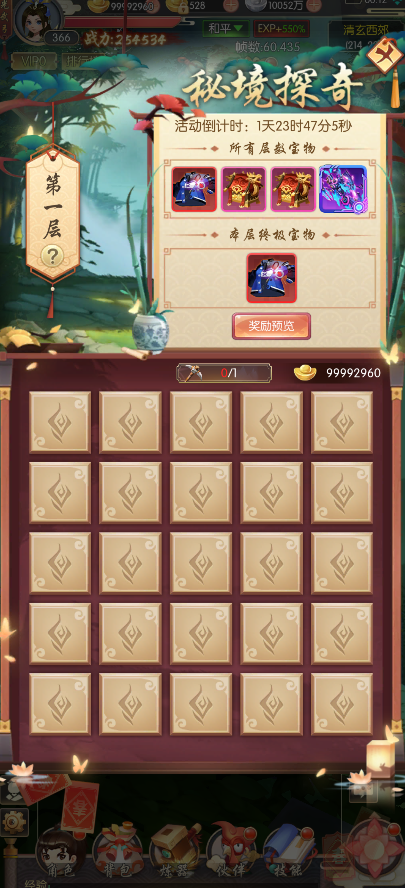 2、秘境共有四层,档玩家获取本层终极宝物后,会开启前往下一层的道路;