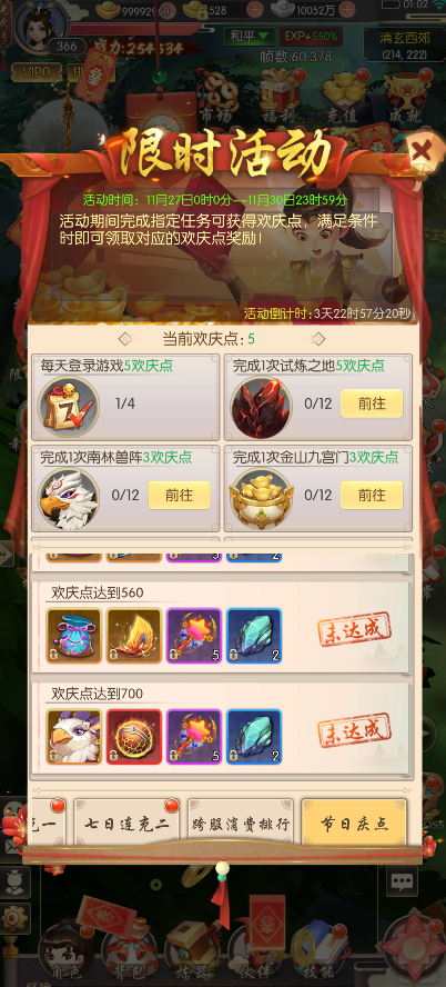 活动期间完成指定任务可获得欢庆点,满足指定条件时即可领取对应的欢庆点奖励!
