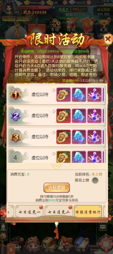 l 消费达5000元宝可参与排名,排行榜每10分钟刷新1次;