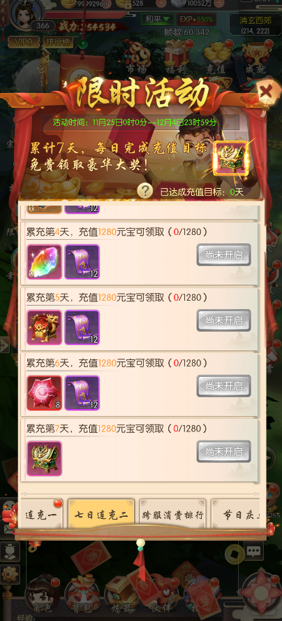 累计7天,每日完成充值目标,免费领取豪华大奖!