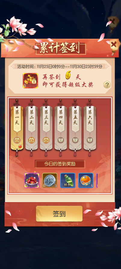 l 活动期间,每日登录之后可以进行签到,每次签到即可领取一份奖励;