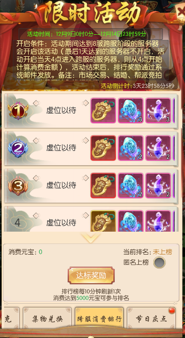 l 消费达5000元宝可参与排名,排行榜每10分钟刷新1次;