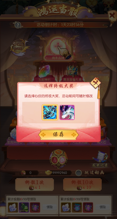 3. 在寻珍前需要完成天阶、地阶奖励池自选。