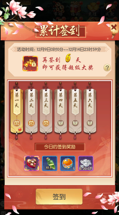 l 活动期间,每日登录之后可以进行签到,每次签到即可领取一份奖励;