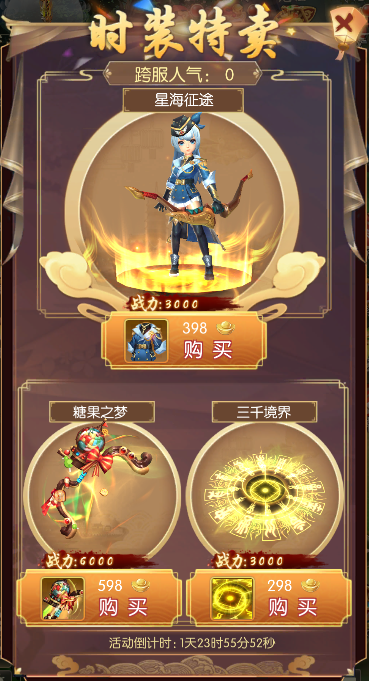 活动期间,定制外形大放送,限时特惠上架!少侠切勿错过喔。