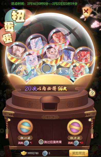 活动期间,可使用扭蛋币在扭蛋机中进行抽奖,抽取获得限量版的图鉴奖励以及外观奖励