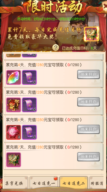 l 在活动期间开服的服务器,开服首日可免费补签至当前进度,以便新手玩家领取累计大奖!