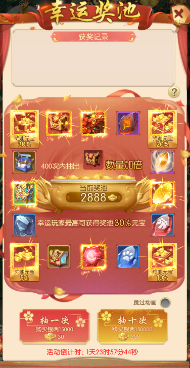 l 抽到粉色奖励但没有获得终极大奖时,可获得幸运值积累,幸运值满时下次粉色奖励必定获得终极大奖!