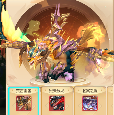 l 高级遗迹大奖为大坐骑【雷兽坐骑礼盒★】,礼盒中包含大坐骑荒古雷兽、炎天战龙、北冥之鲲。