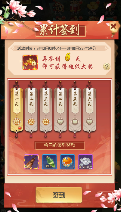 l 活动期间,每日登录之后可以进行签到,每次签到即可领取一份奖励;