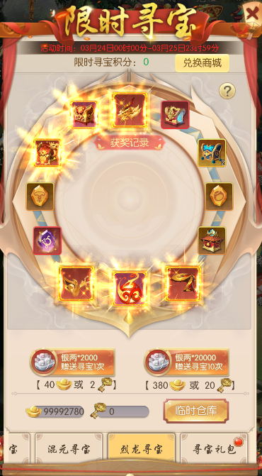l 寻宝积分还可保留到下一次活动中使用