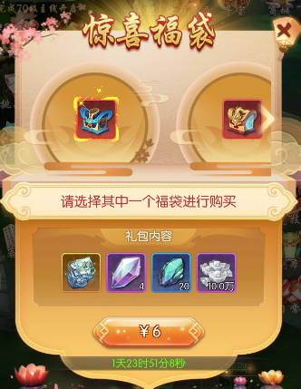 活动期间,可在【惊喜福袋】处购买性价比非常高的神兵福袋以及命理石福袋。
