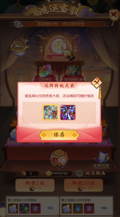 l 掷出鸿运骰,根据朝上的颜色可获得对应颜色的随机大奖;
